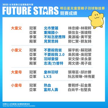 星動公益運動系列賽不僅是全國性專項比賽,更是一個充滿愛與希望的公益盛會。邀請各界共同參與,透過運動傳遞愛與希望,一同加入這場充滿熱情與感動的賽事!
